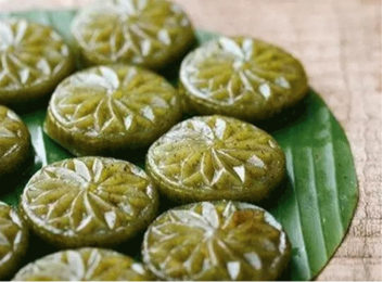 相传,佛山有一年遇上瘟疫,有长者告诉大家,有一种栾(luán)樨(xī)树可除瘴气湿热,人们便采摘了栾樨叶磨碎取汁,加上米粉做成饼。吃了栾樨饼,果然大人小孩都精神爽利,而正好那天是四月初八亚婆诞,人们便认为这是祖先亚婆为保一方百姓和儿孙后代安康而赐给大家的饼。